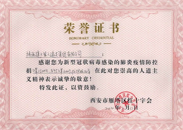陜建六建集團向西安市雁塔區(qū)捐贈防疫物資