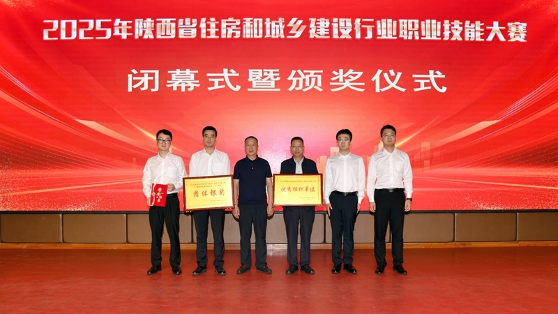 9月18日,2025年陜西省住房和城鄉(xiāng)建設(shè)行業(yè)職業(yè)技能大賽頒獎(jiǎng)儀式在西安科技大學(xué)舉行,咸陽(yáng)市住建局調(diào)研員朱守謙、建管科科長(zhǎng)馮生全帶隊(duì)參會(huì)領(lǐng)獎(jiǎng),我集團(tuán)兩名選手姚瑞巖、呂思航參加的咸陽(yáng)市住建局代表隊(duì)在“建筑信息模型技術(shù)員(BIM)比賽項(xiàng)目”中成績(jī)突出榮獲“團(tuán)體銀獎(jiǎng)”,姚瑞巖榮獲“個(gè)人二等獎(jiǎng)”,呂思航榮獲“個(gè)人三等獎(jiǎng)”。